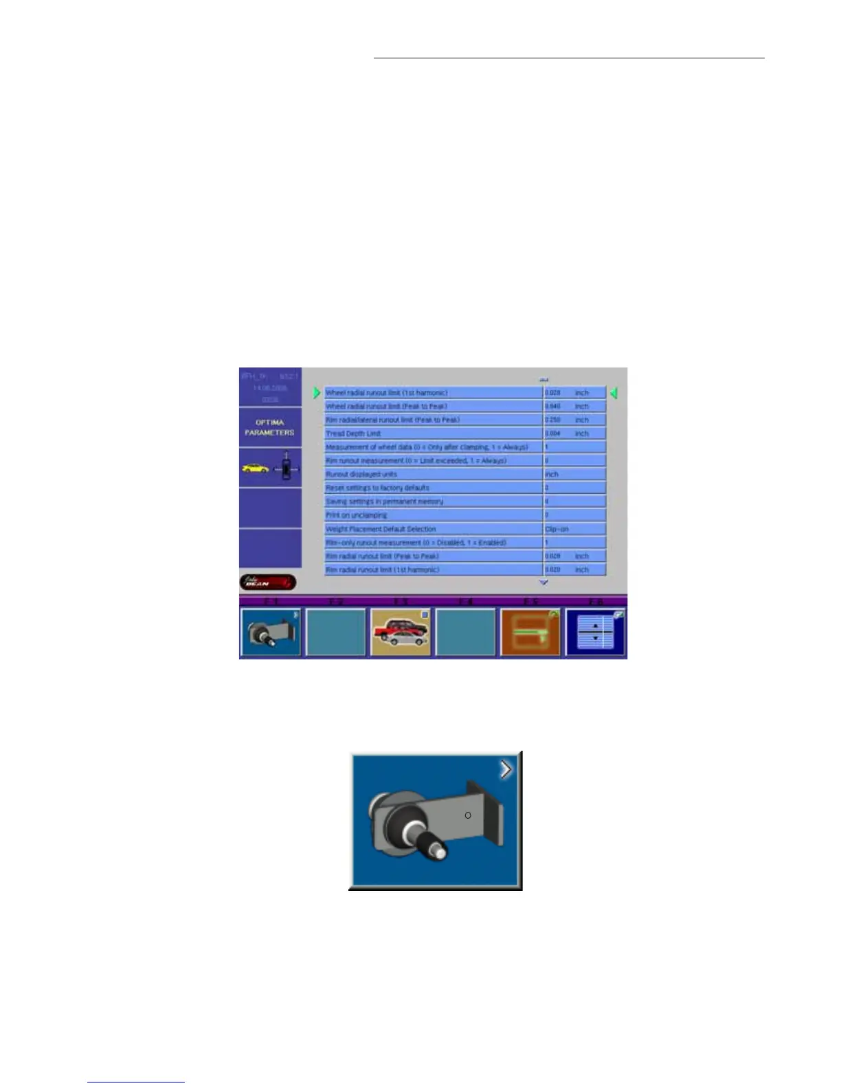 Select key F3 to open the OPTIMA PARAMETERS screen page and select key F1, Fig 52.