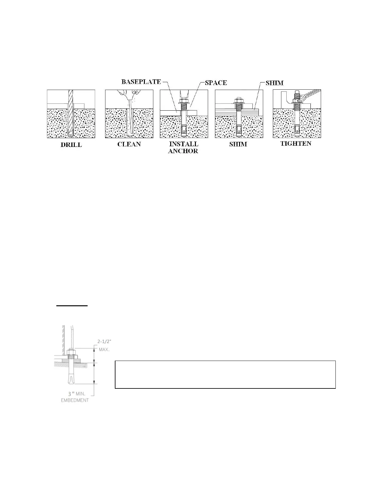 NOTE: The 3/4” 5-1/2” lg. wedge anchor bolts supplied must have