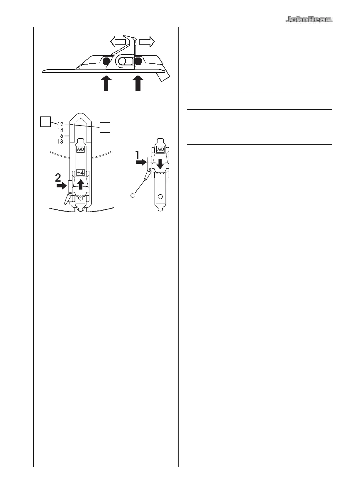 Push the lever (C) on the left side of each jaw and shift at