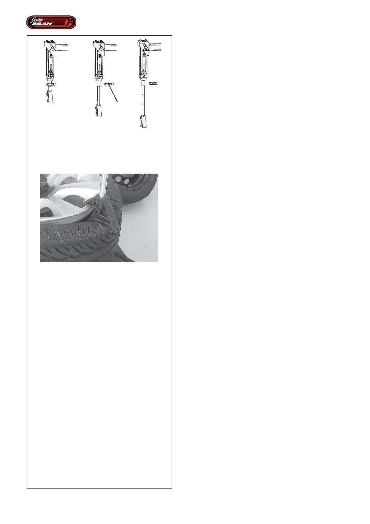 • Bring the bead pusher device 1 onto the tire in a