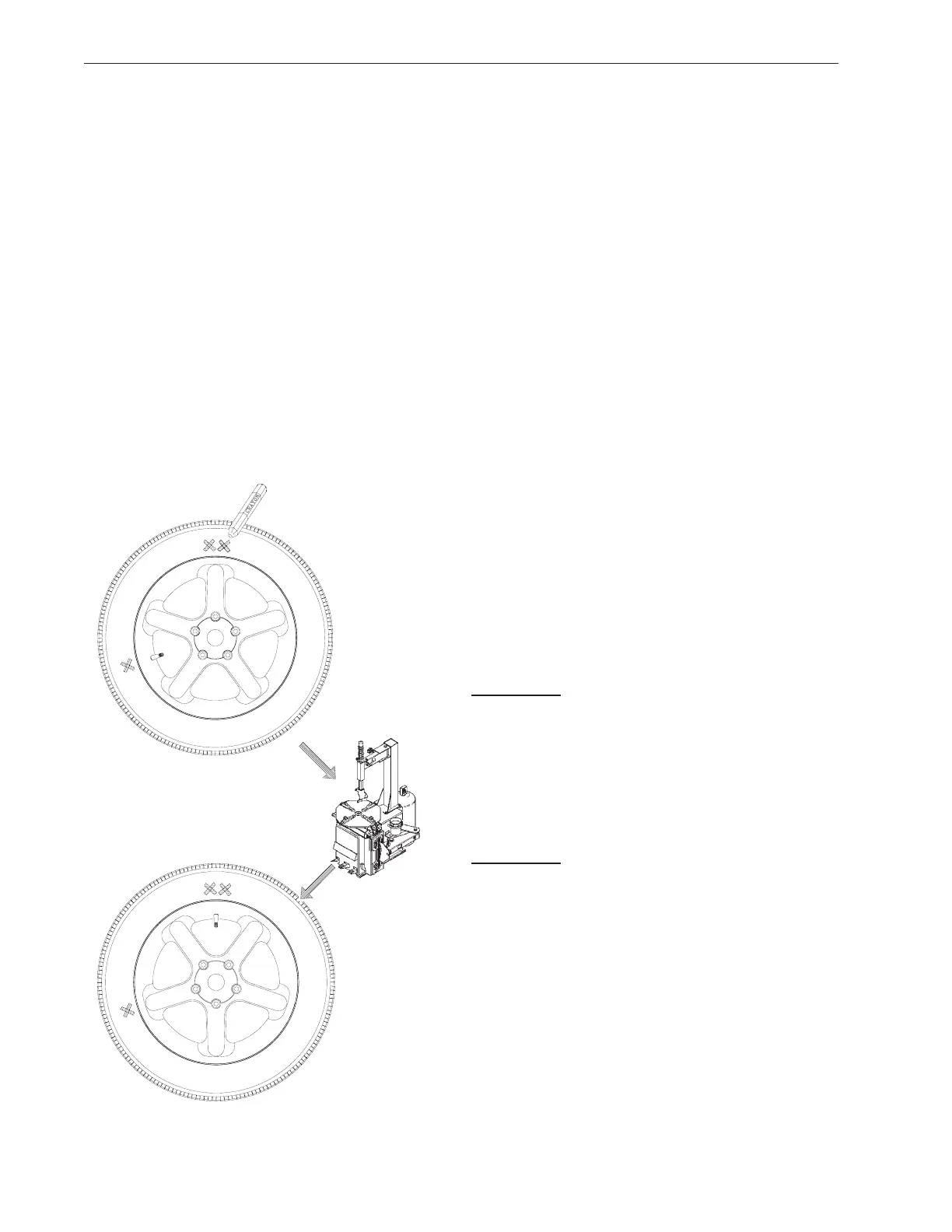 cross mark (XX) on the right side of the tire at 12 o'clock