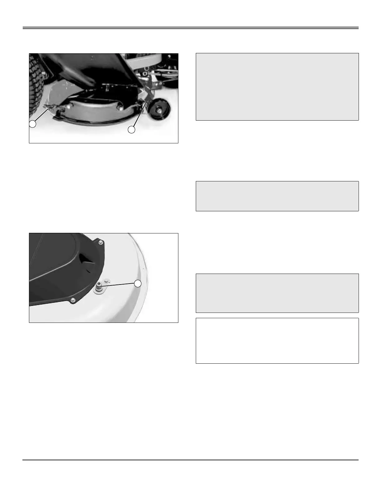 • On 122 cm (48 in.) deck, wheel bracket grooves (F).