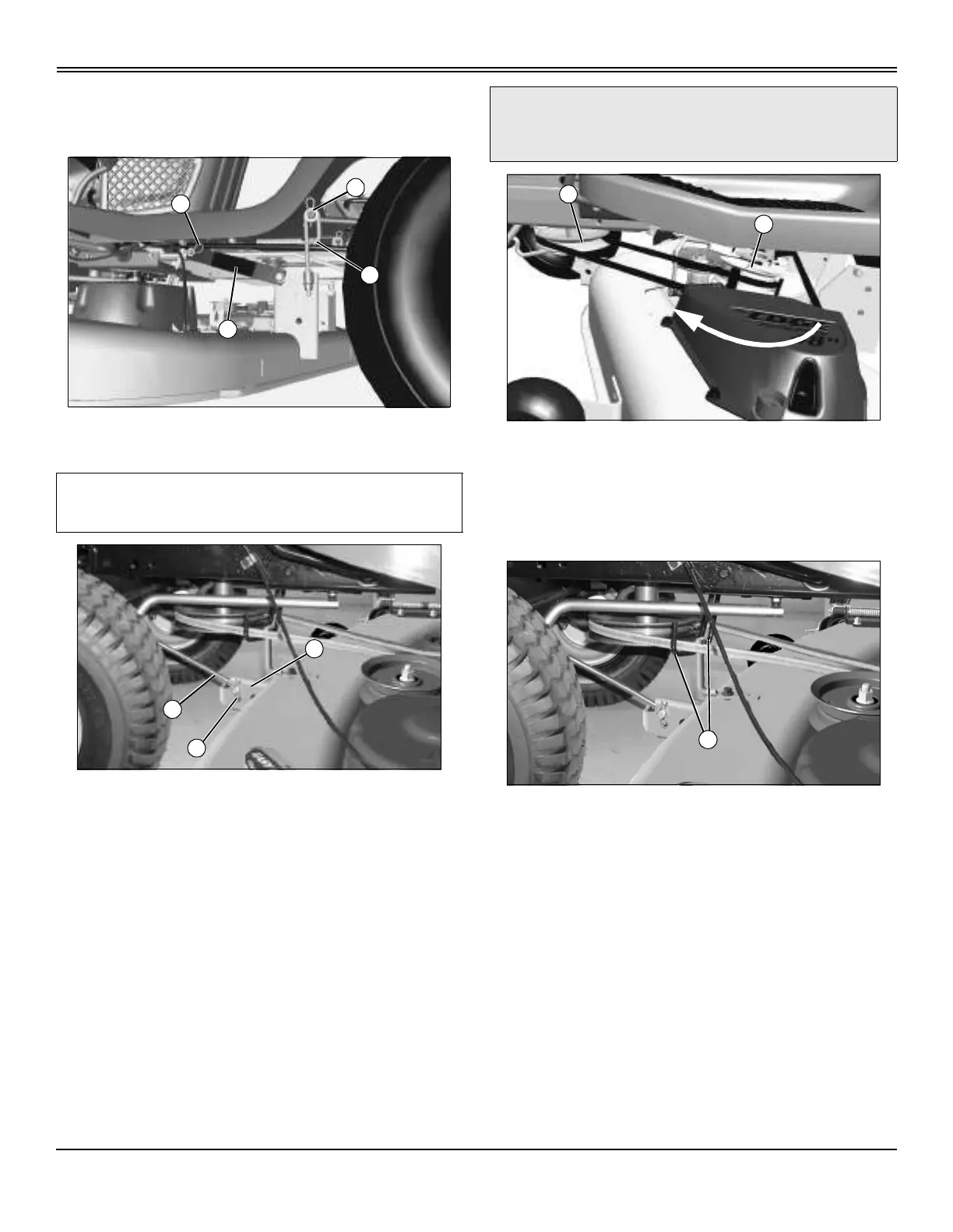 • On 107 cm (42 in.) mower deck: Make sure belt is routed through both