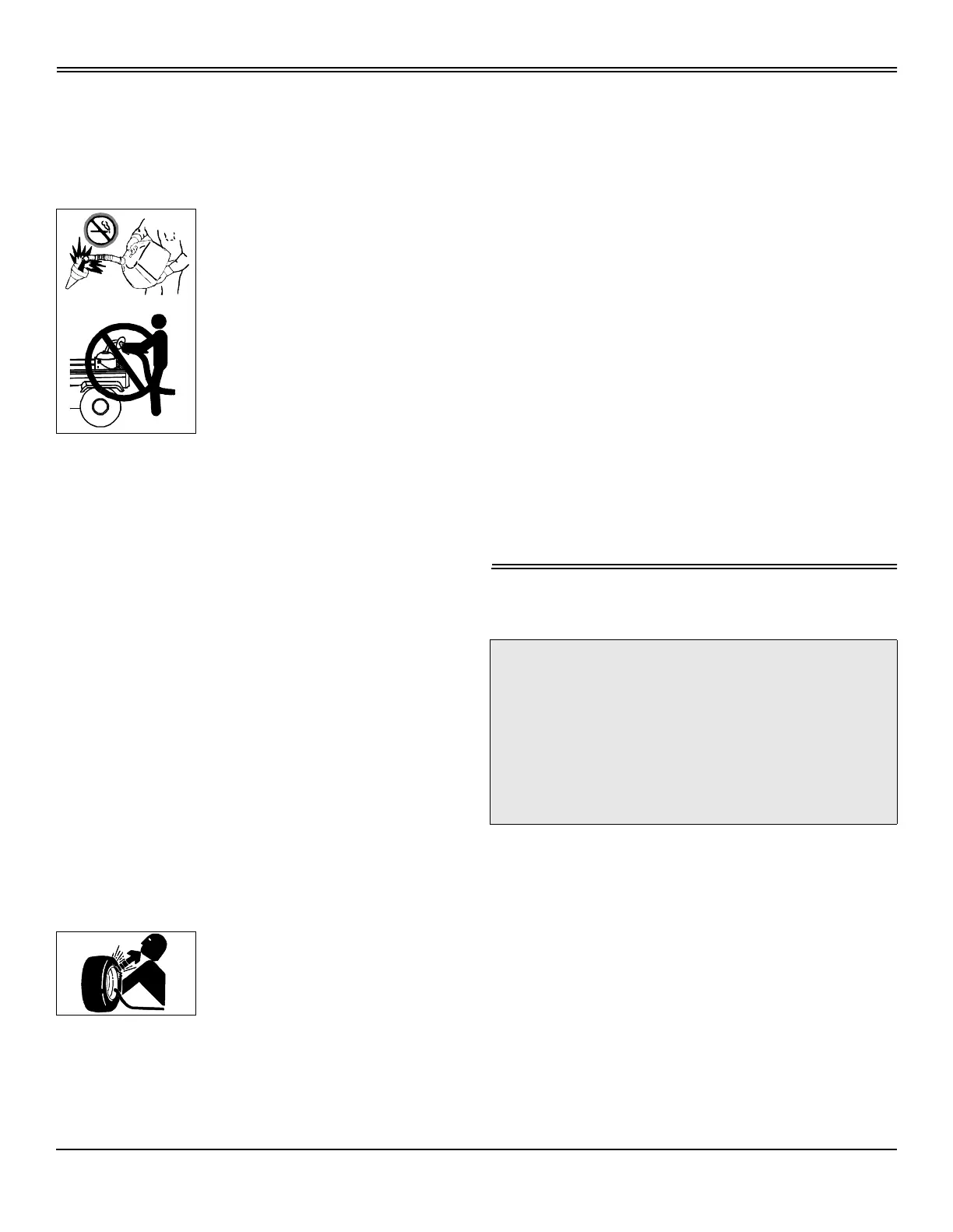 • Check fuel lines, tank, cap, and fittings frequently for cracks or leaks.