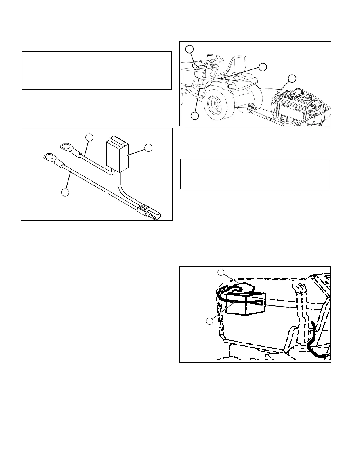 (B) at battery. Make sure the harness passes between