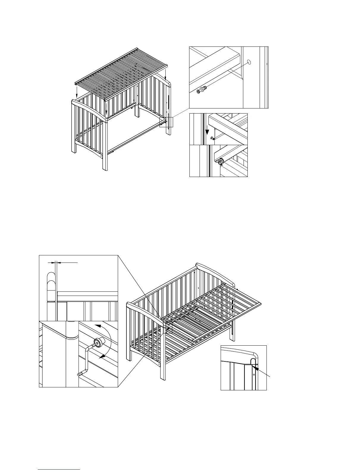 The cot has a choice of three mattress base height positions. Screw four assembly dowels (fixing 4)