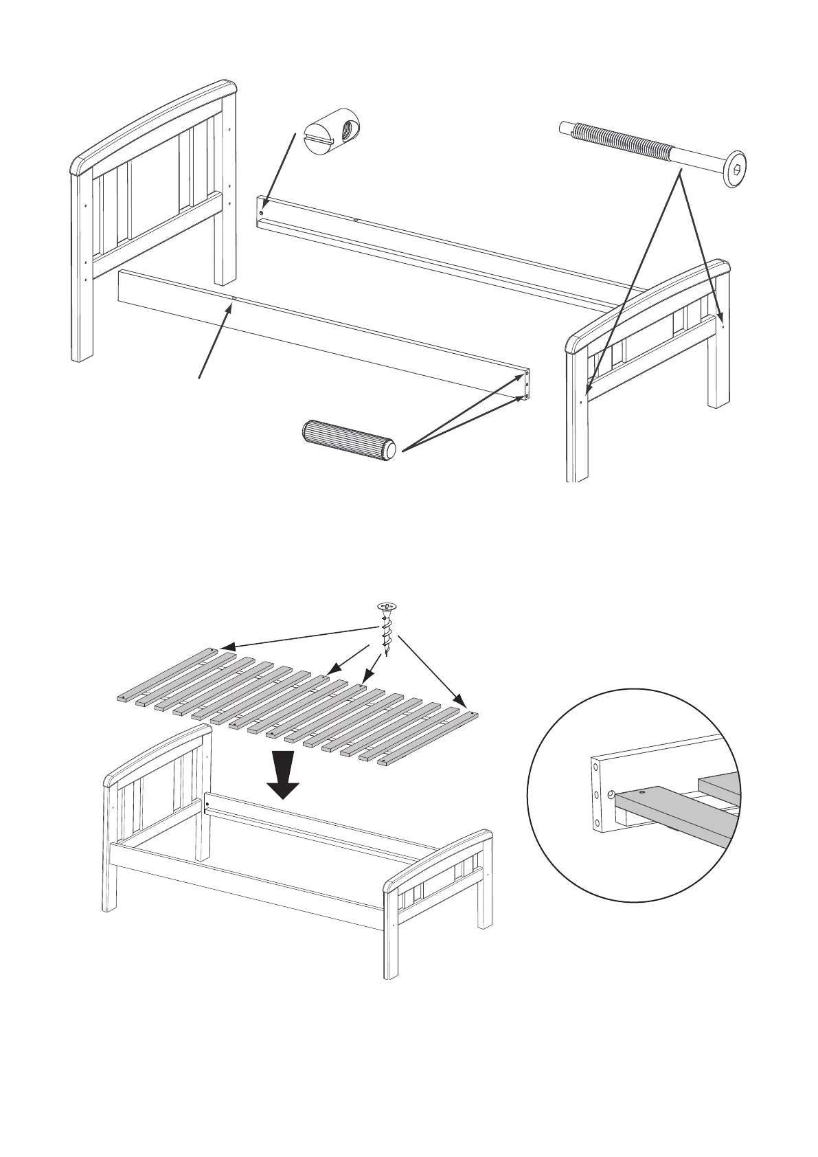 upper and lower holes in the base sides. Attach the headboard (part A) and footboard (part B) using
