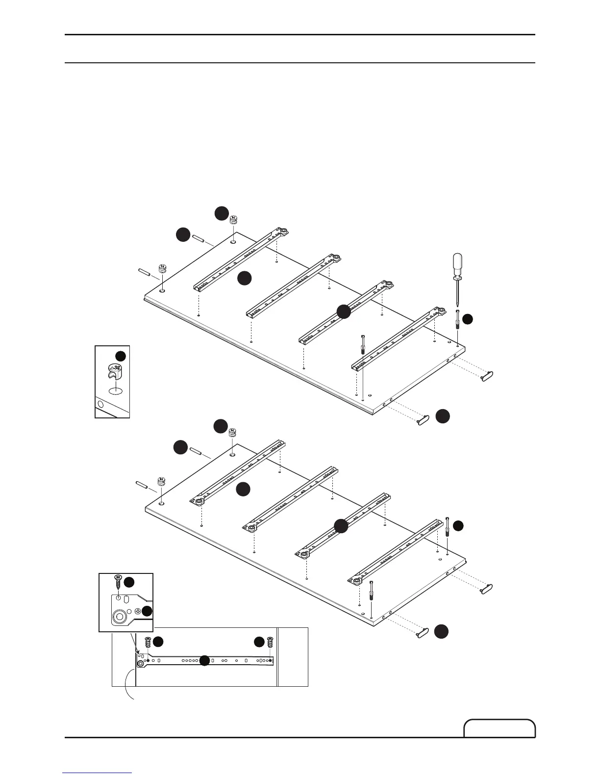 Fix 8x runner parts (Z1) to the side panels (2) (3) through holes shown in the detail view using