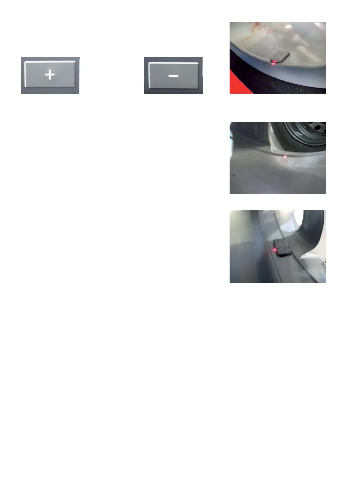 Press the "-/+" arrow button to adjust the laser dot to the correct