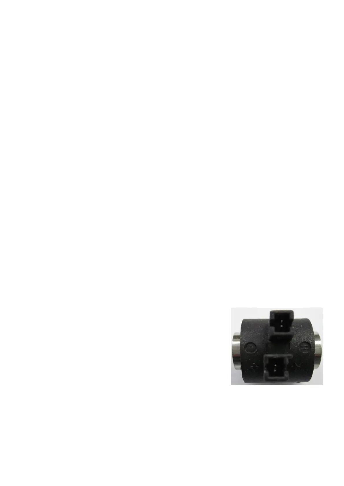 is encapsulated by a moulded case of black plastic. The slotted terminal strips of the two contact plates jut out of the