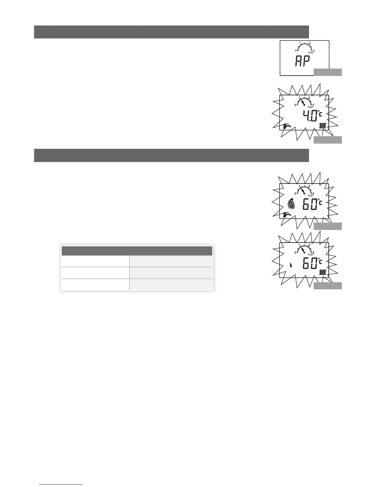 will flash showing the radiator, the small flame and temperature. The flame symbol