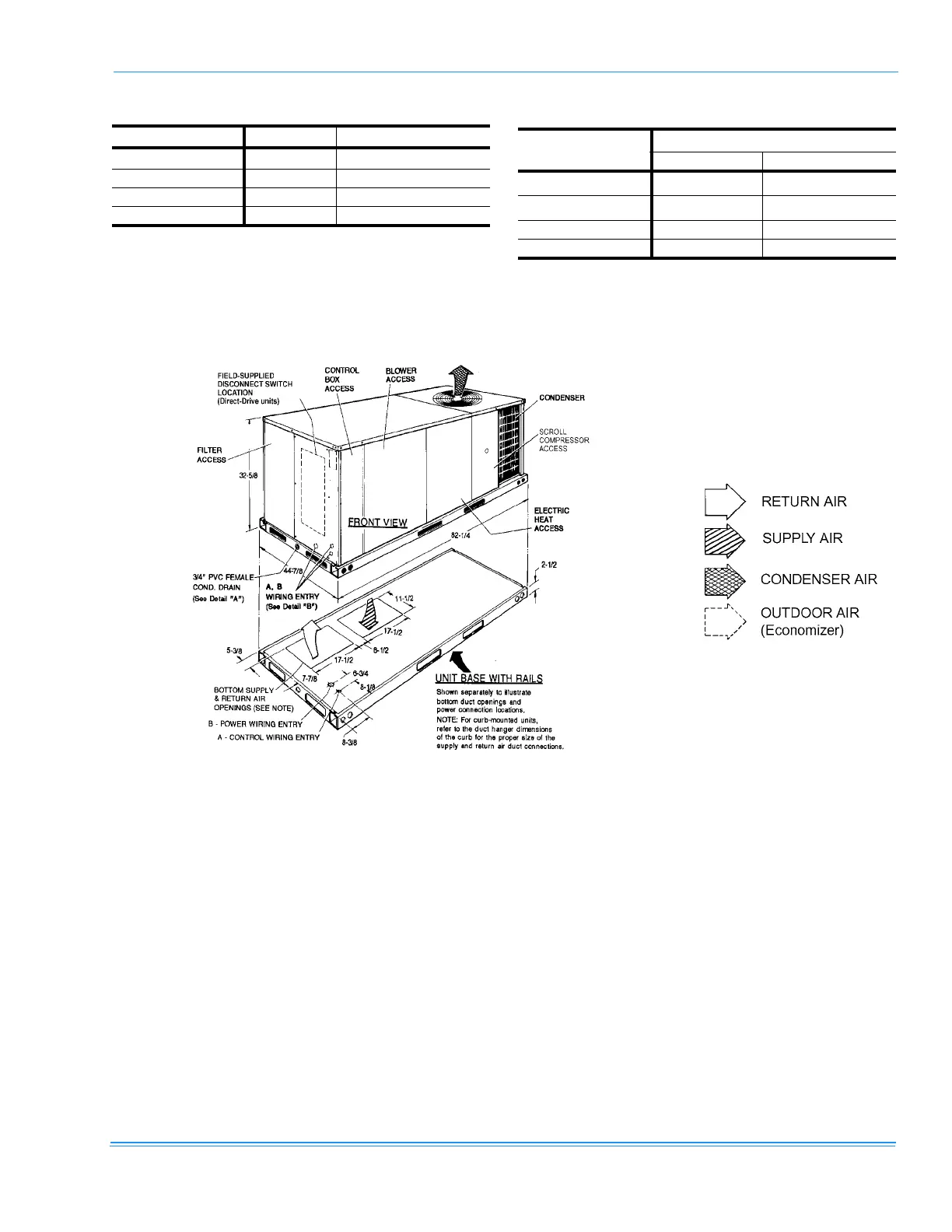 FIGURE 10 - UNIT DIMENSIONS (3 - 5 TON COOLING ONLY/ELECTRIC HEAT) FRONT VIEW