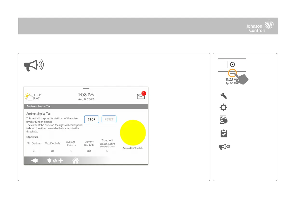 Note: This test can only be accessed if the Panel Ambient Noise Detector Setting is Enabled.