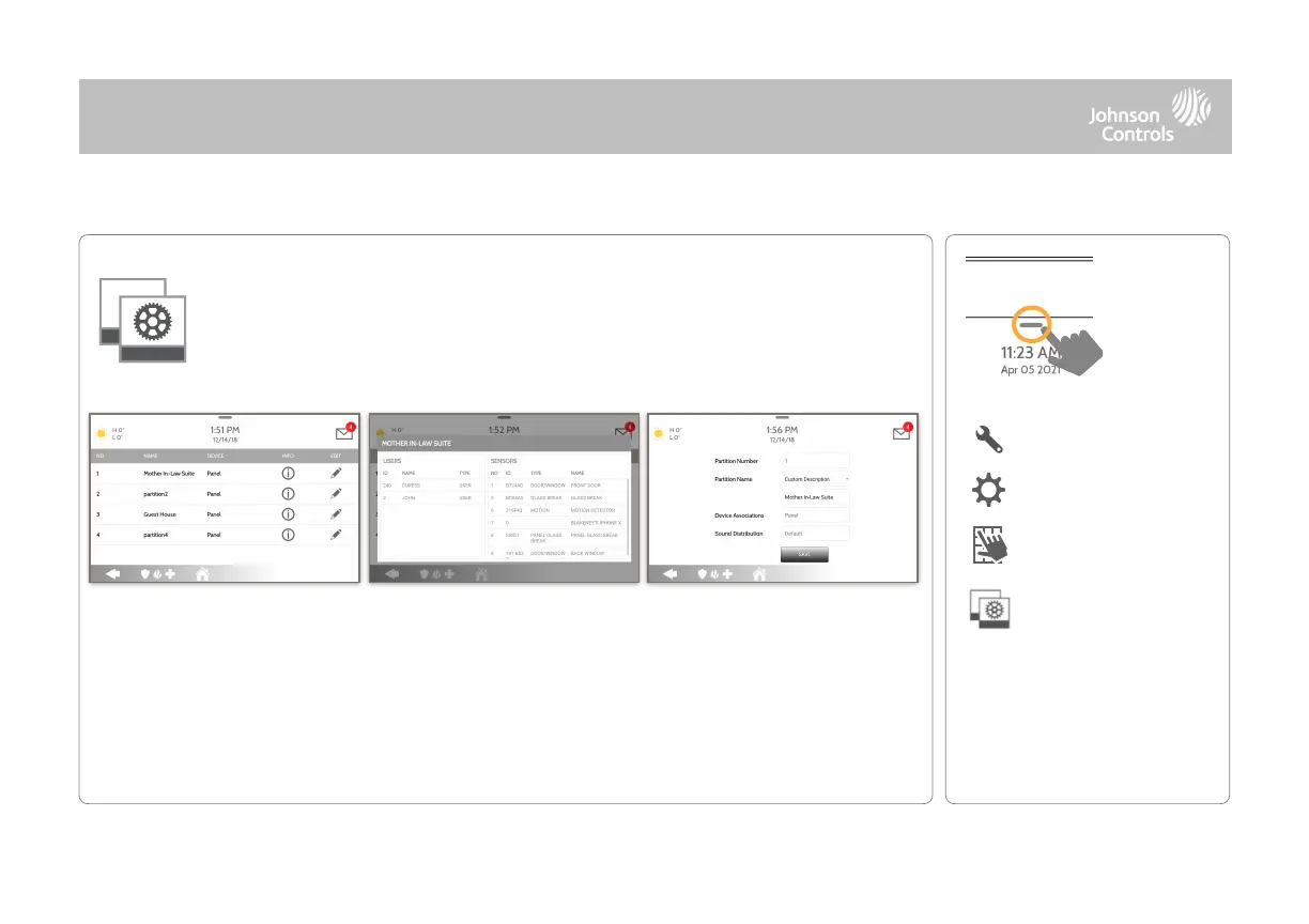 Edit the default name of a partition and view a list of users and sensors that