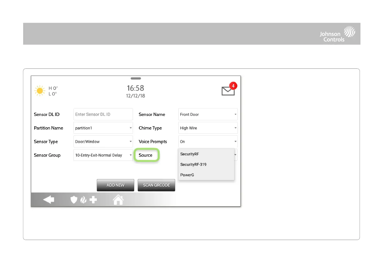 Source indicates the sensor’s incoming