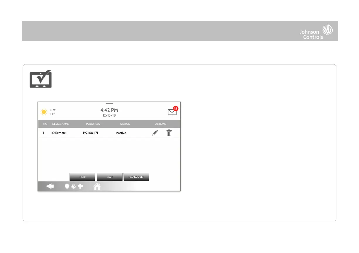 4. The remote device will pair to the panel and will