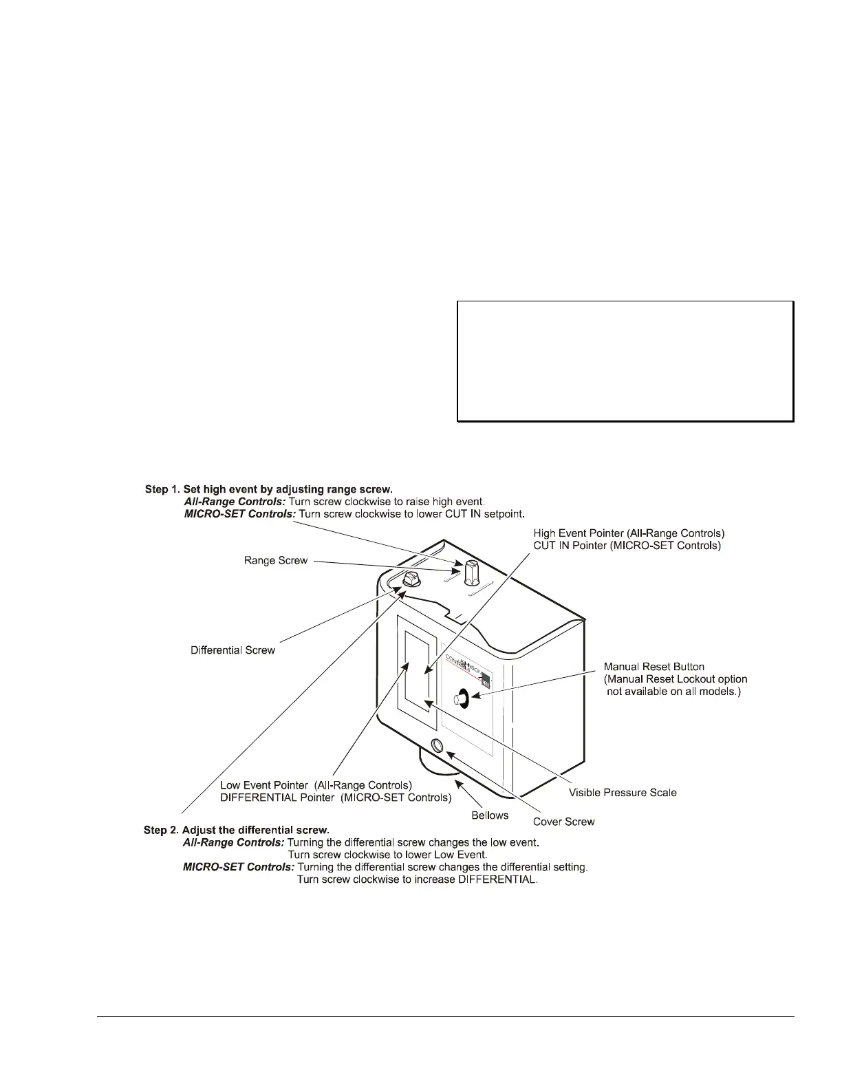 Turning the range screw adjusts the CUT IN setpoint