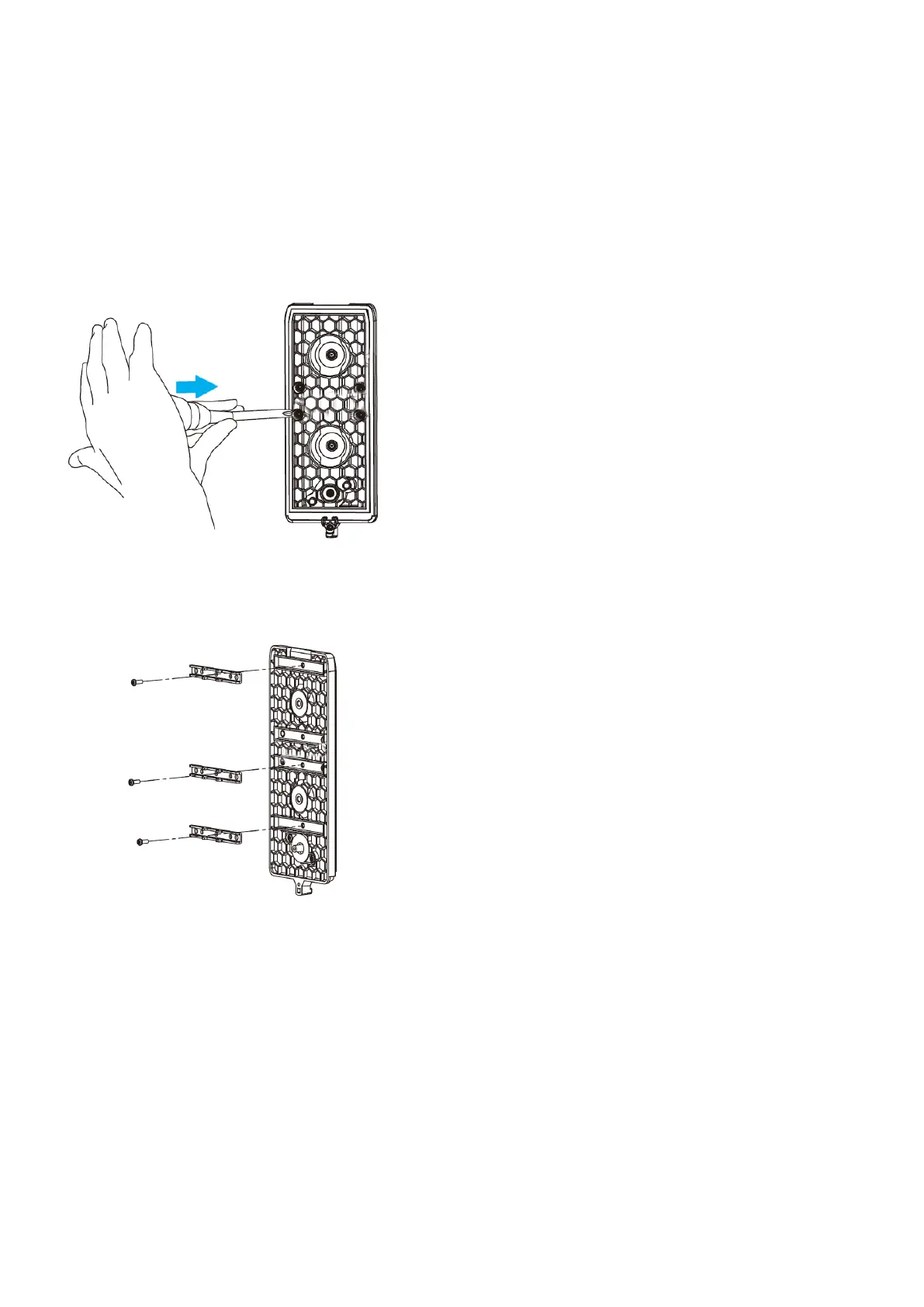 4. Use the supplied M3 x 8 screws to attach three pole mounting brackets to the chassis.