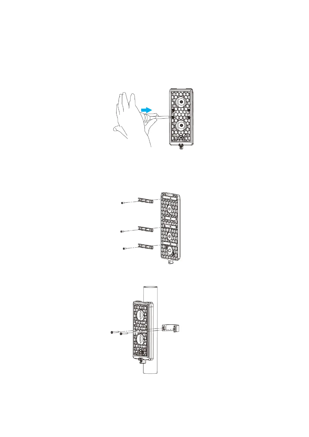 À l’aide des vis M3x8 fournies, fixez trois supports de montage au châssis.