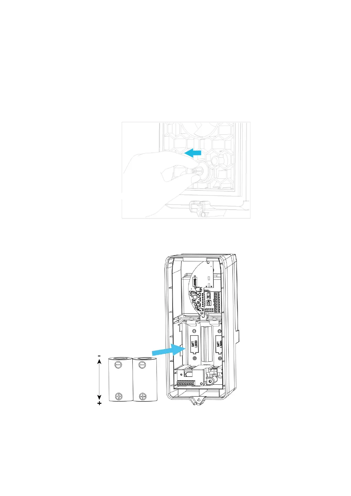 6. Insira duas baterias no compartimento da bateria dentro da caixa traseira e coloque a chave do módulo