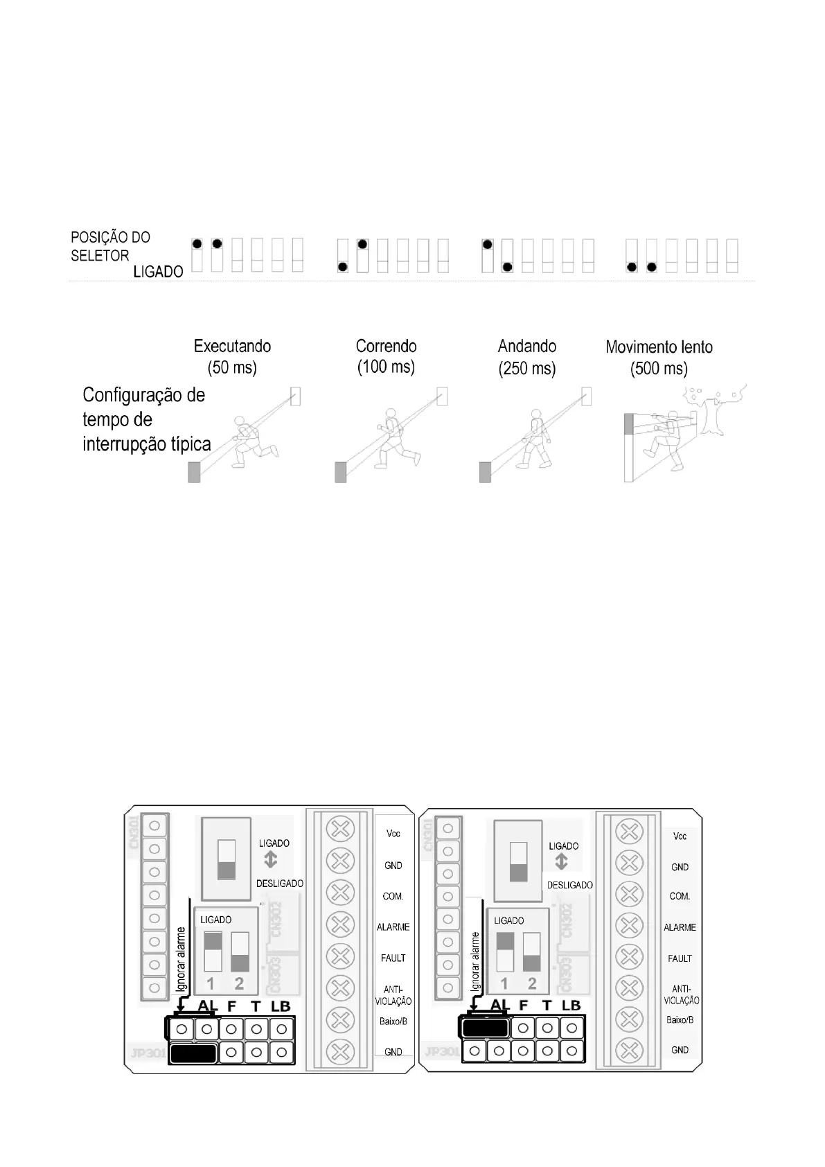 detectores usando uma das quatro posições do seletor abaixo. A configuração padrão é 50 ms.