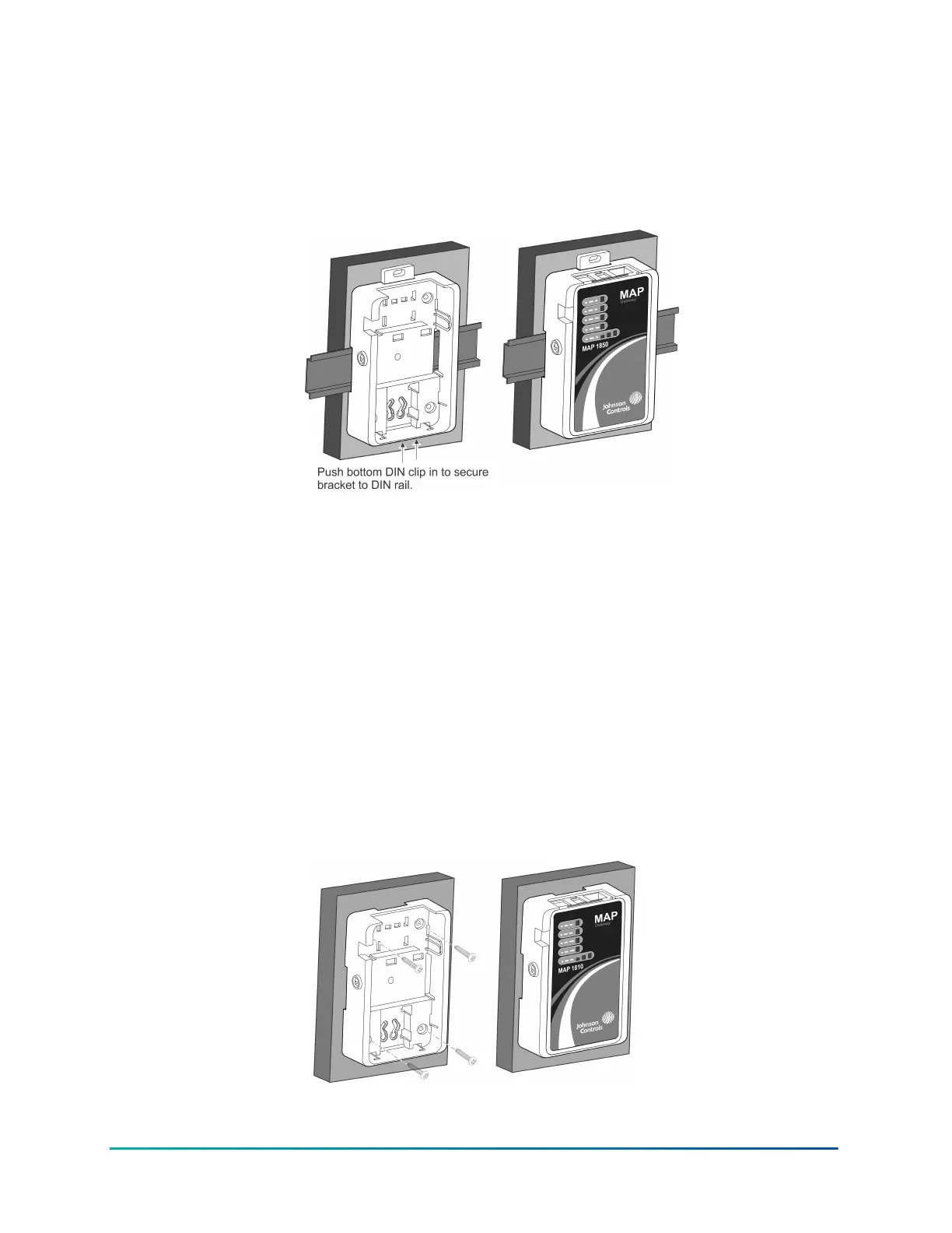 4. Push the bottom DIN (mounting) clip inward to secure the mounting bracket on the DIN rail.