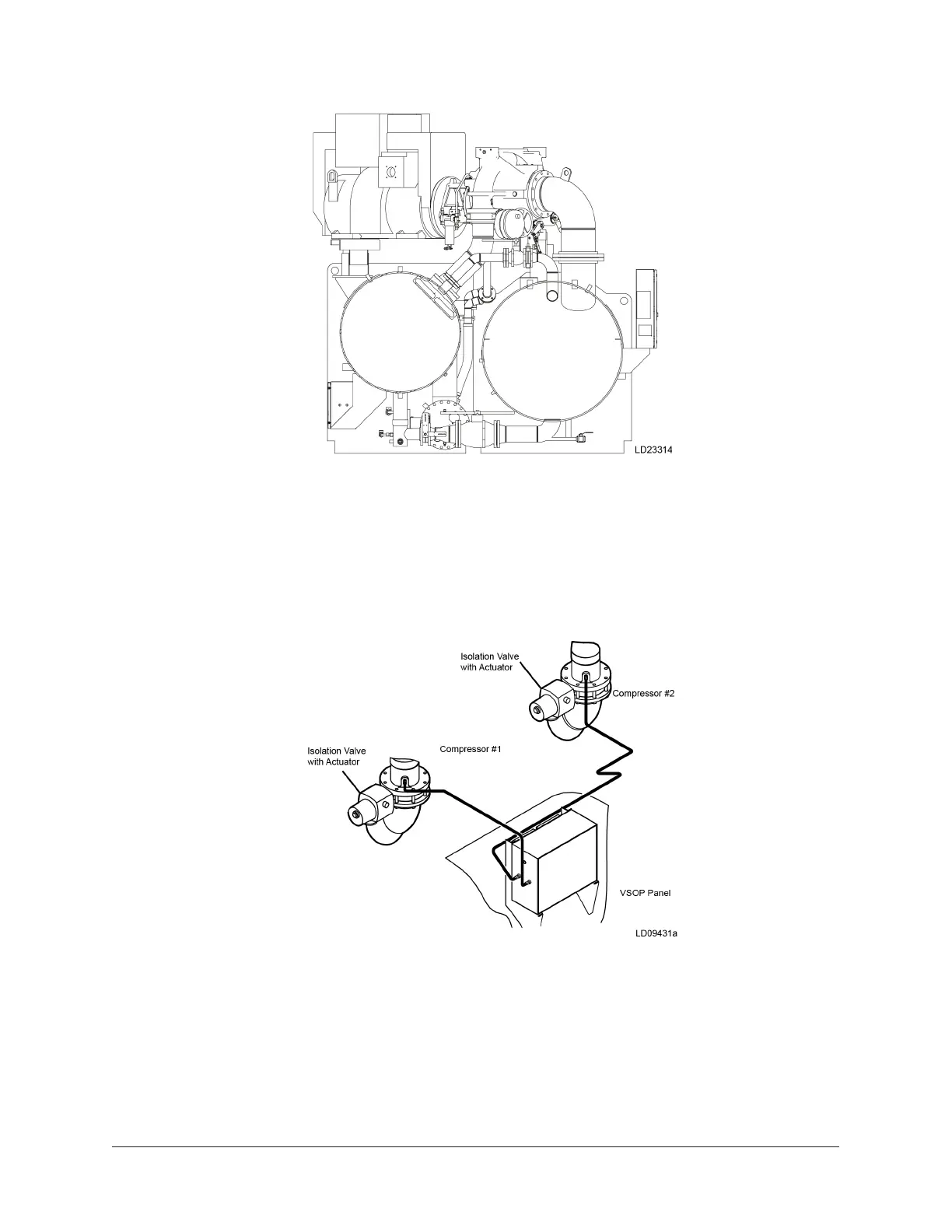 12. Install the oil cooler refrigerant piping and oil return piping. See Figure 33 and Figure 34.