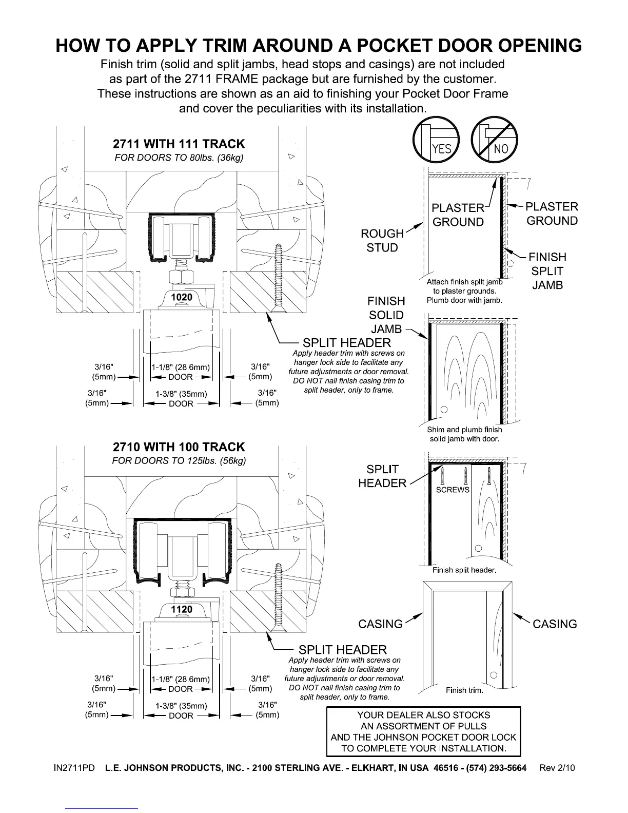 Johnson Hardware 2700 - Applying Trim to Pocket Door Openings; Trim Installation for 2711 Track; Trim Installation for 2710 Track