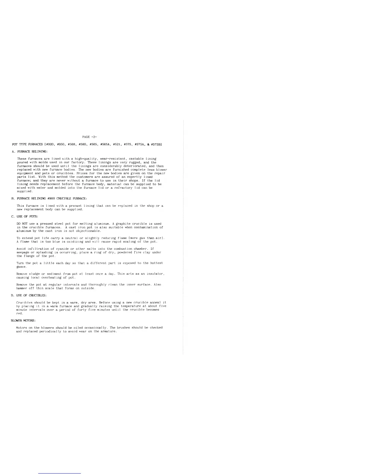 Johnson 136 - Pot Furnace Maintenance Details; Pot Furnace Relining; Pot and Crucible Usage Guidelines; Blower Motor Maintenance