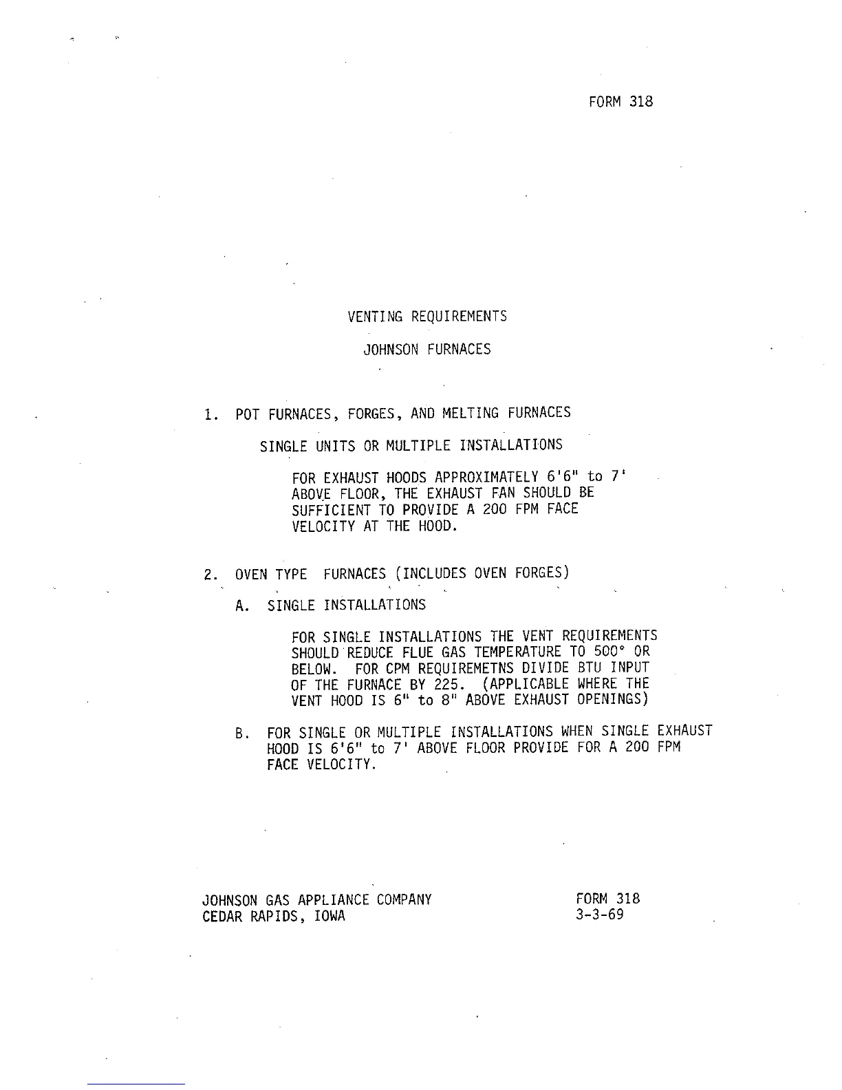 Johnson 900 - Venting Requirements; Pot Furnaces, Forges, and Melting Furnaces; Oven Type Furnaces Venting