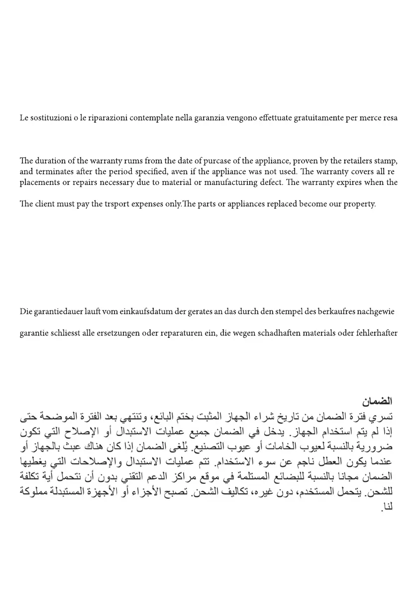 garanzia decade qualora l’apparecchio venga manomesso o quando il difetto sia dovuto ad uso im