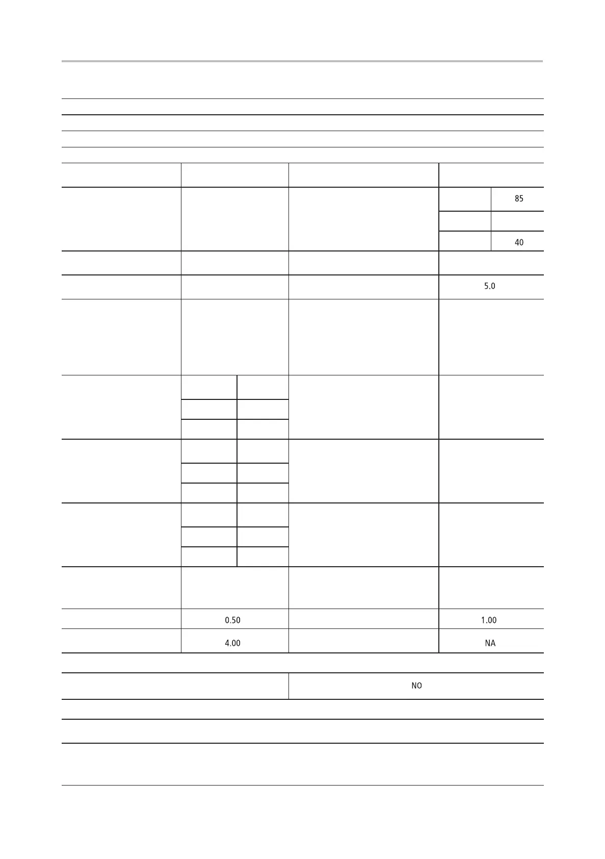 Parâmetros gerais do produto:
