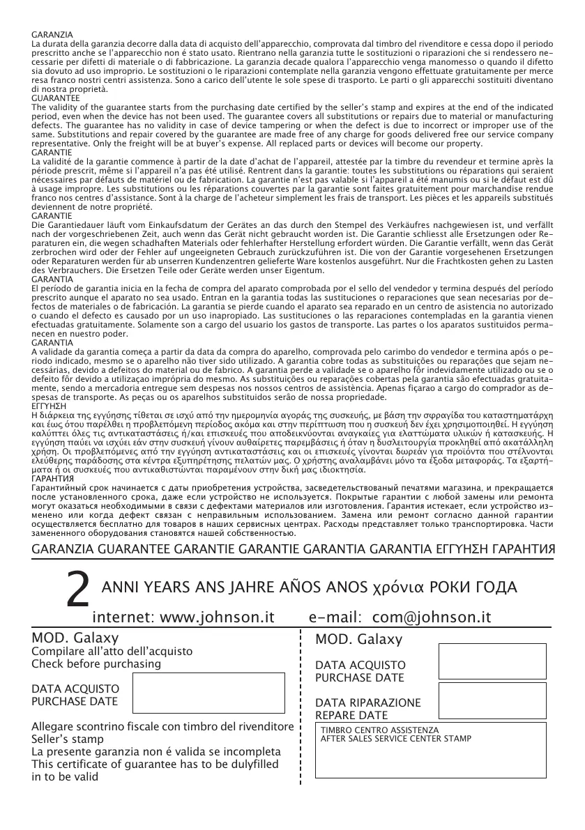GARANZIA GUARANTEE GARANTIE GARANTIE GARANTIA GARANTIA ΕΓΓΥΗΣΗ ГАРАНТИЯ