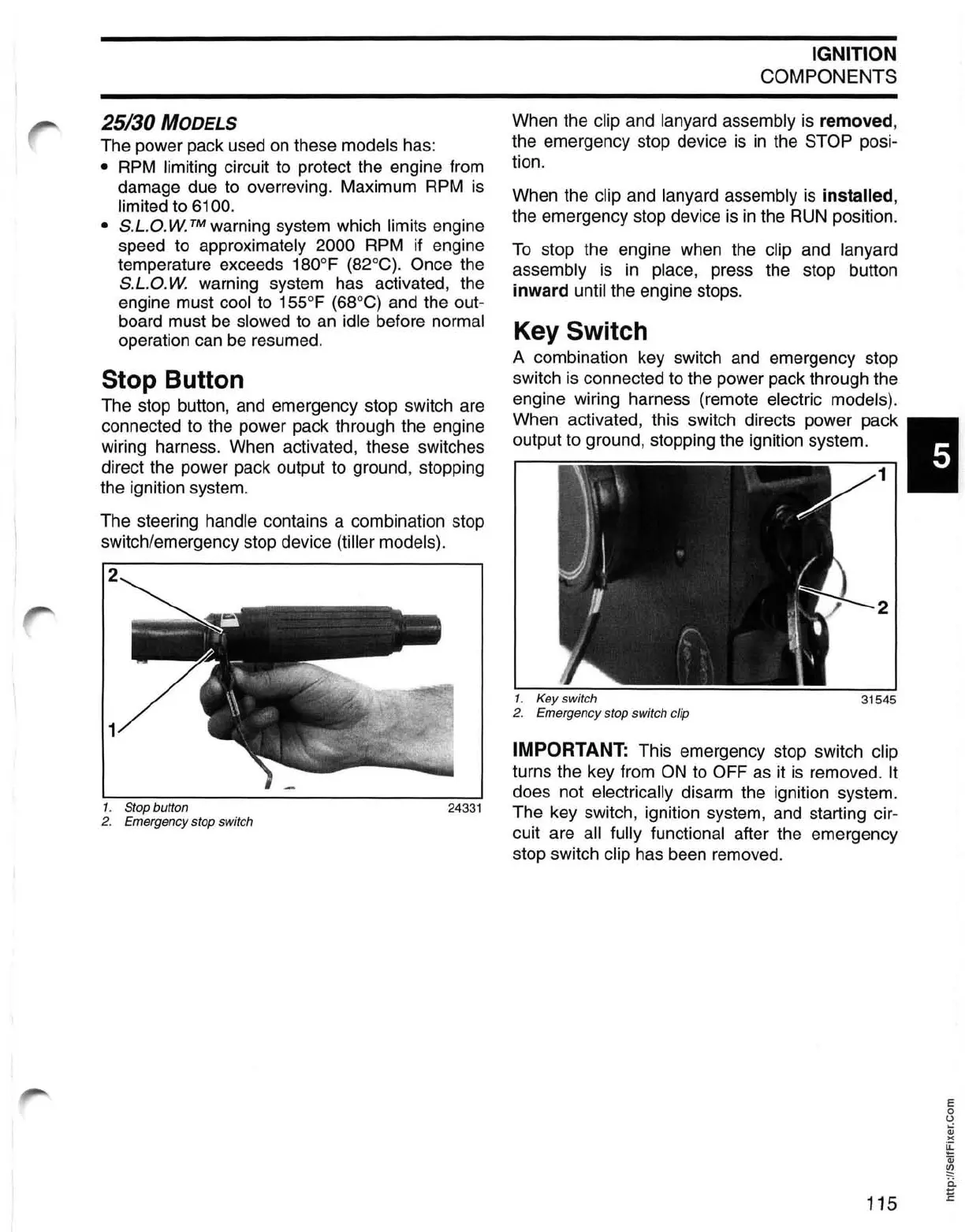 switch/emergency stop device (tiller models).