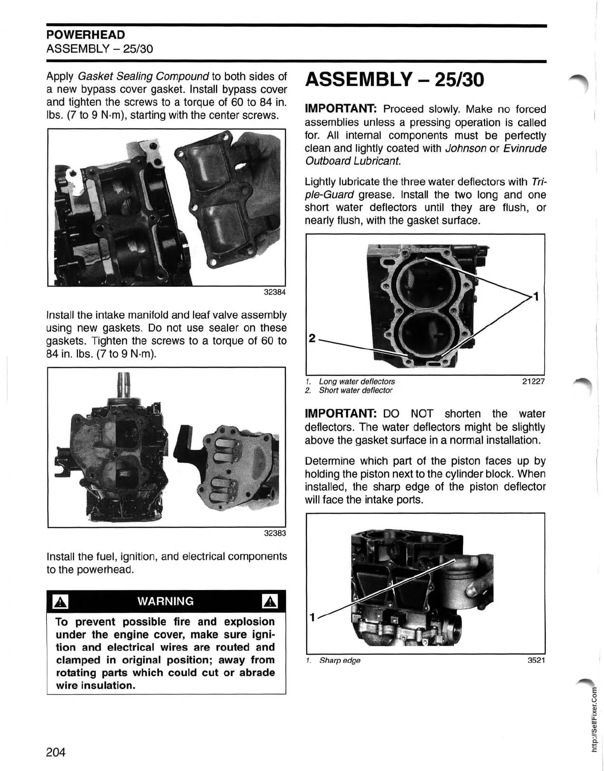 installed, the sharp edge of the piston deflector