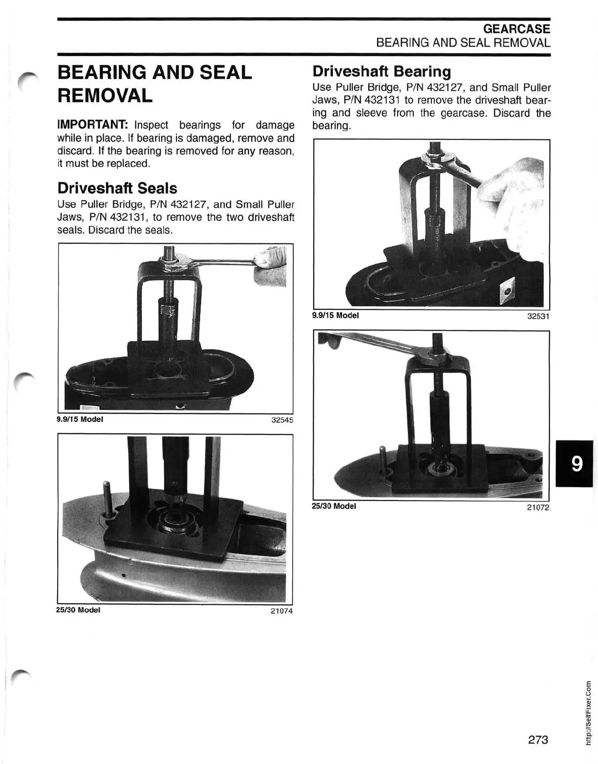 Johnson J15RSRS - Bearing and Seal Removal; Driveshaft Seals; Driveshaft Bearing