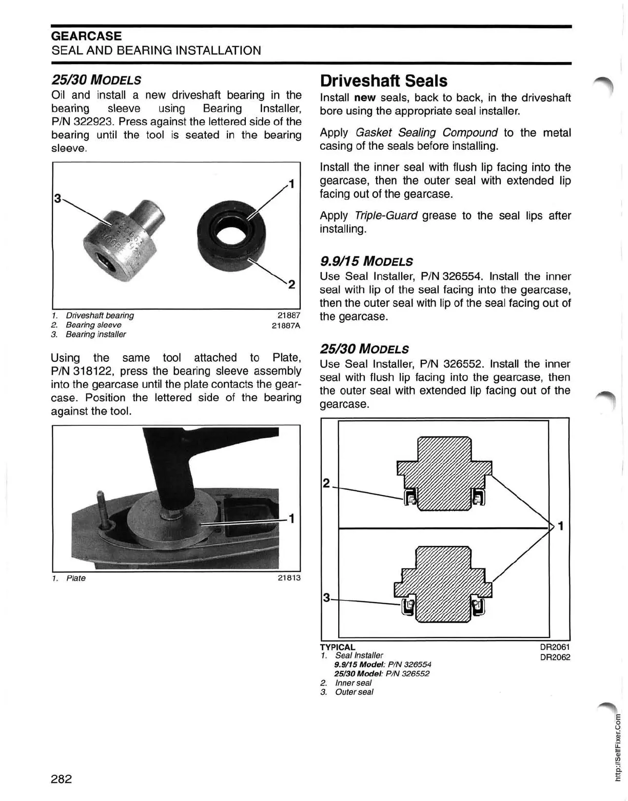 seal with lip of the seal facing into the gearcase,