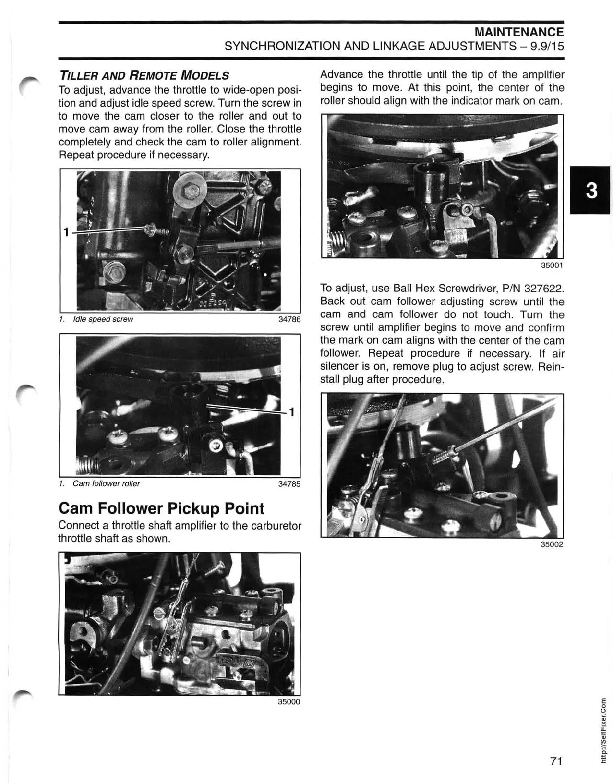 move cam away from the roller. Close the throttle