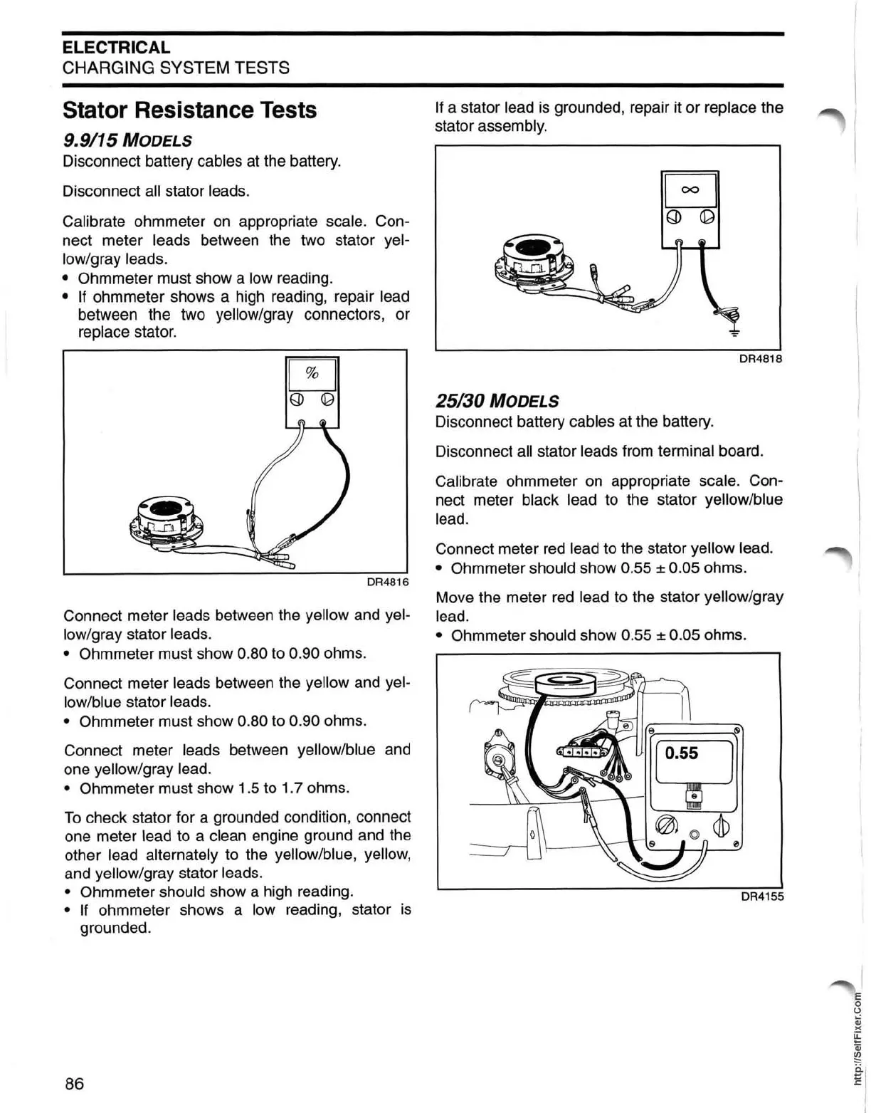 Ohmmeter must show 0.80 to 0.90 ohms.