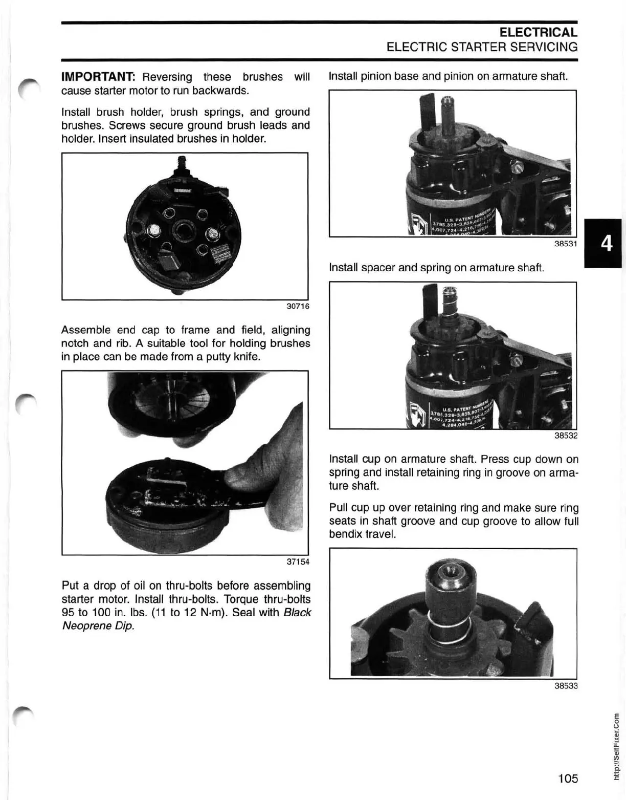 IMPORTANT: Reversing these brushes will Install pinion base and pinion