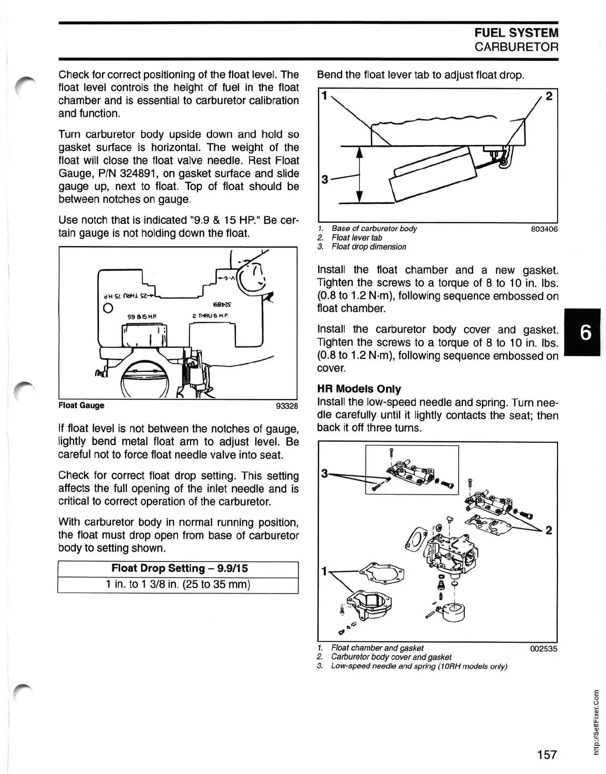 Float Drop Setting - 9.9/15
