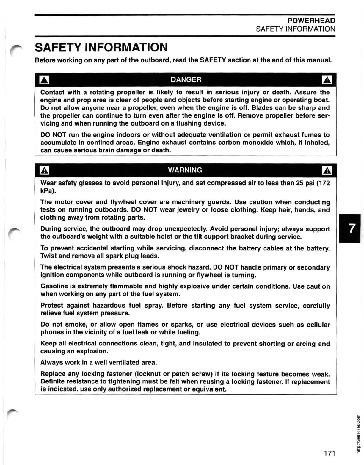 the outboard, read the SAFETY section at the end