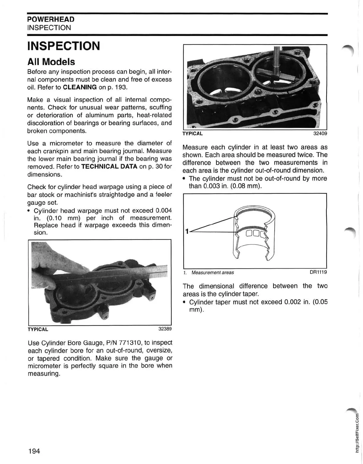 Cylinder taper must not exceed 0.002