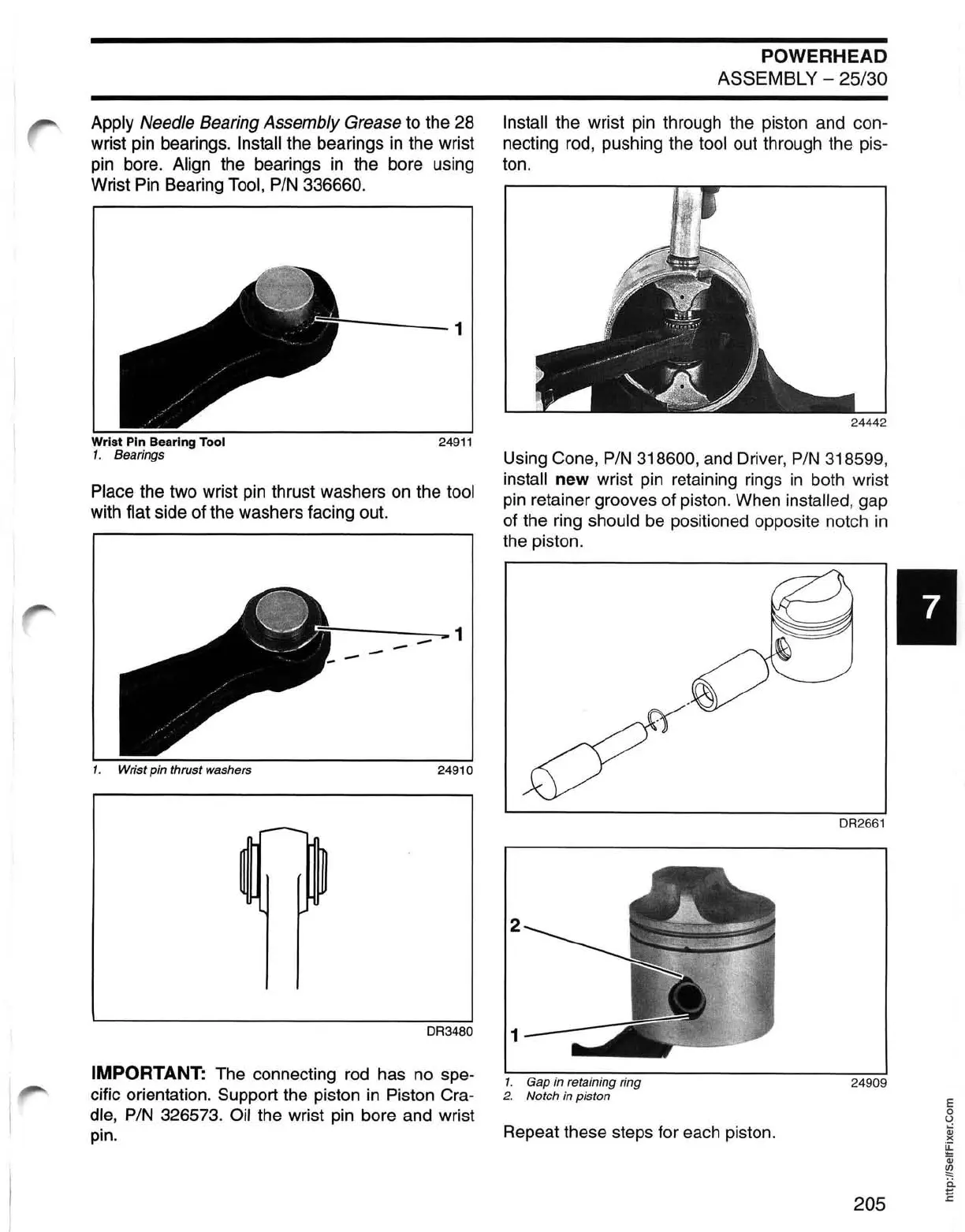 dle, PIN 326573. Oil the wrist pin bore and wrist