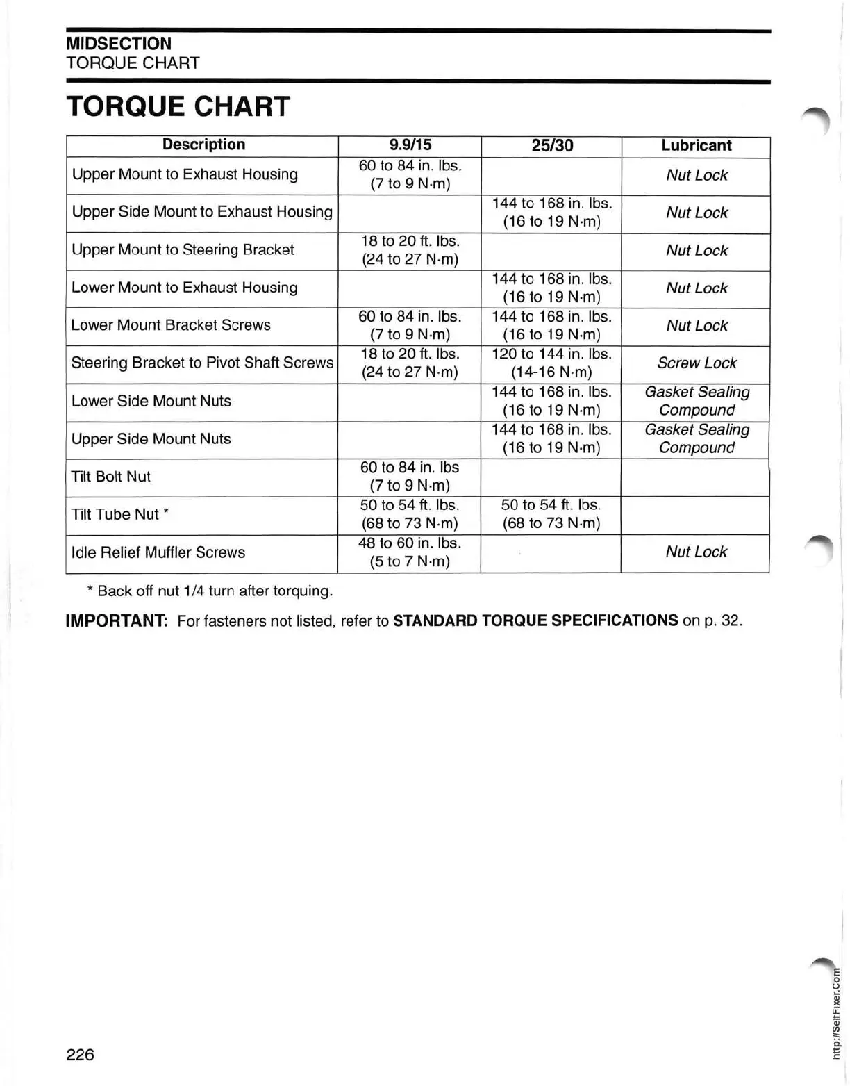 IMPORTANT: For fasteners not listed, refer to STANDARD