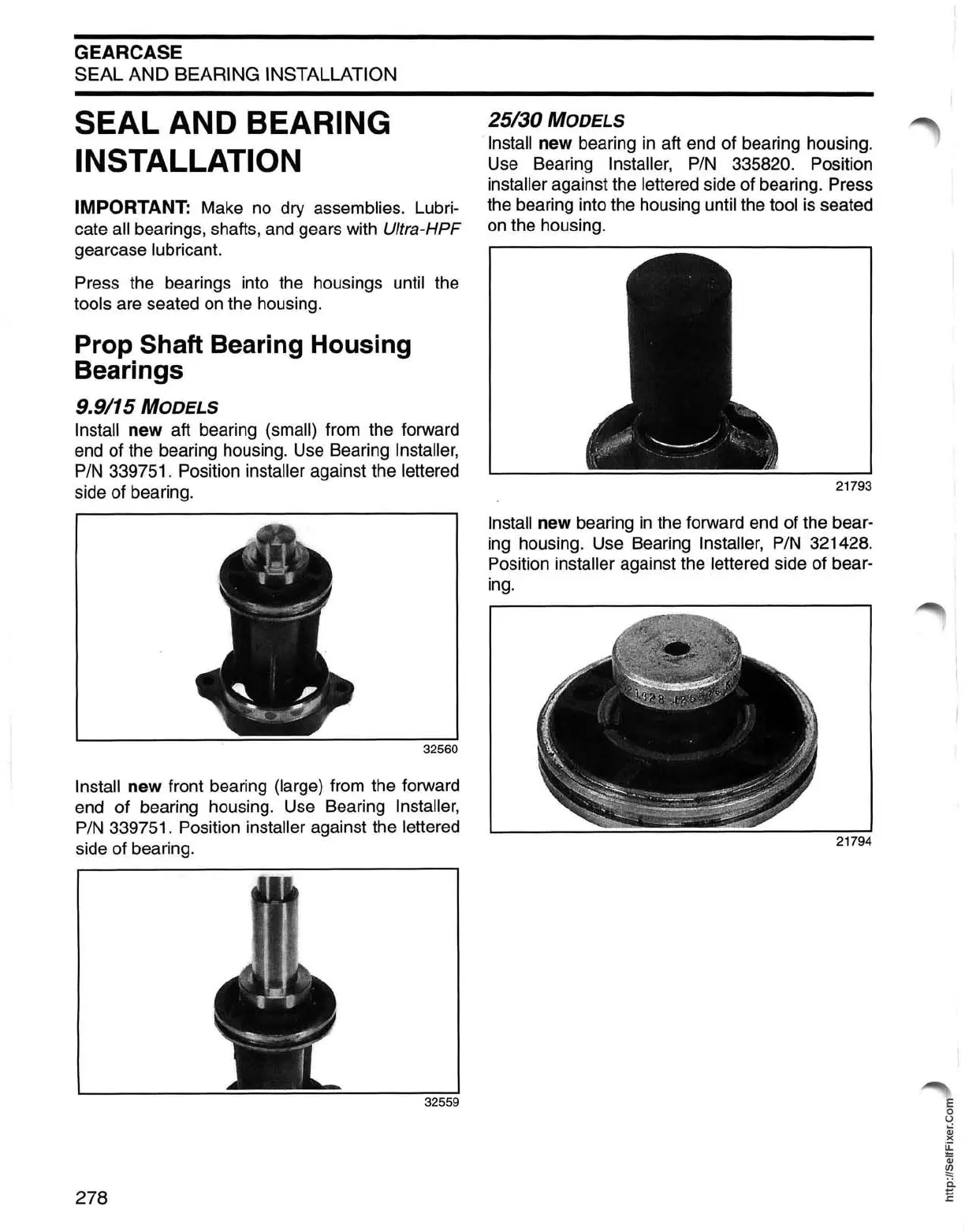Johnson J25RLSRR - Seal and Bearing Installation; Prop Shaft Bearing Housing Bearings