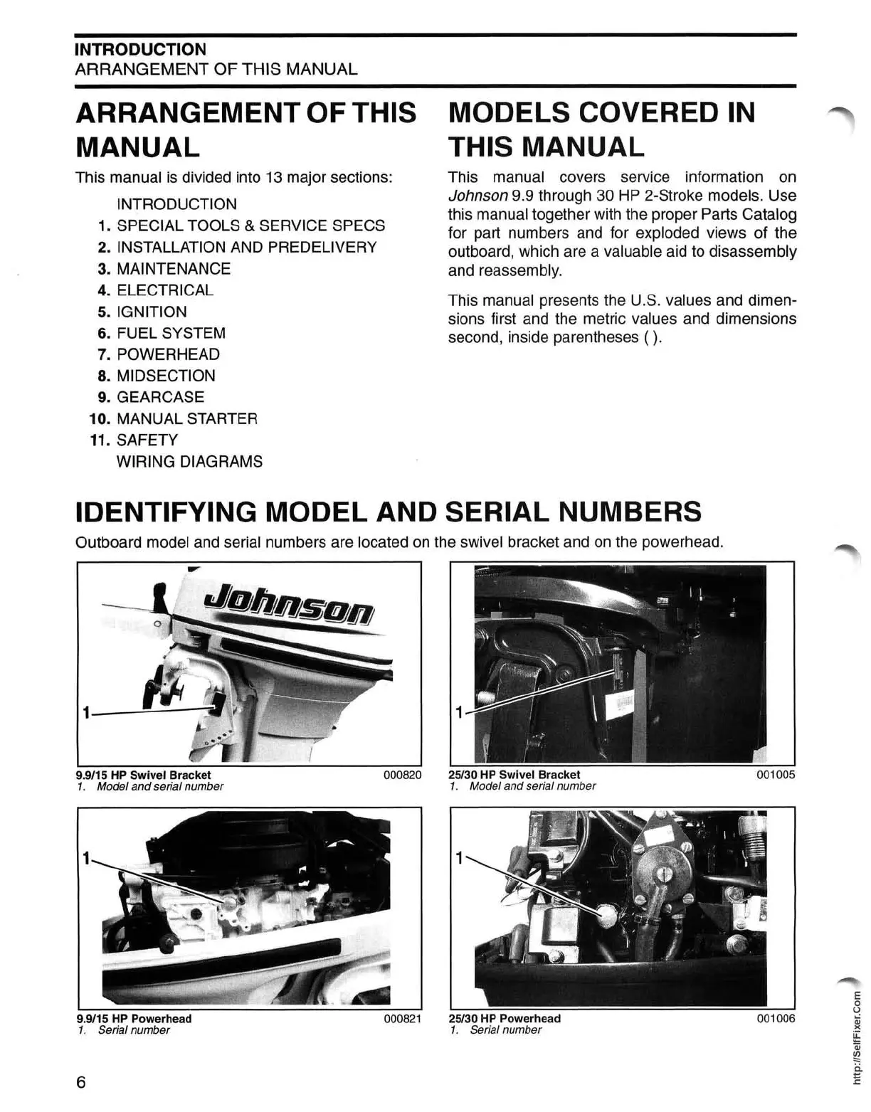 Johnson J25RLSRR - Installation and Predelivery; Arrangement of this Manual; Models Covered in this Manual; Identifying Model and Serial Numbers