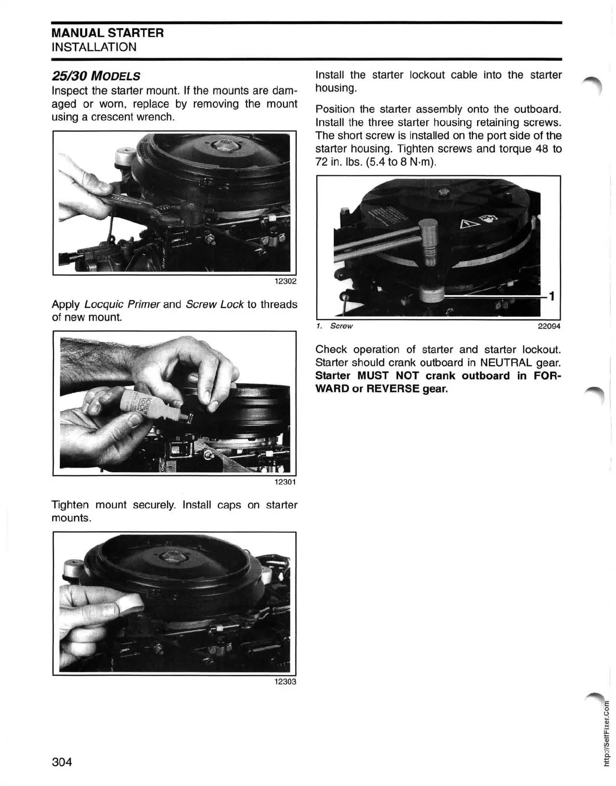 Insta" the three starter housing retaining screws.