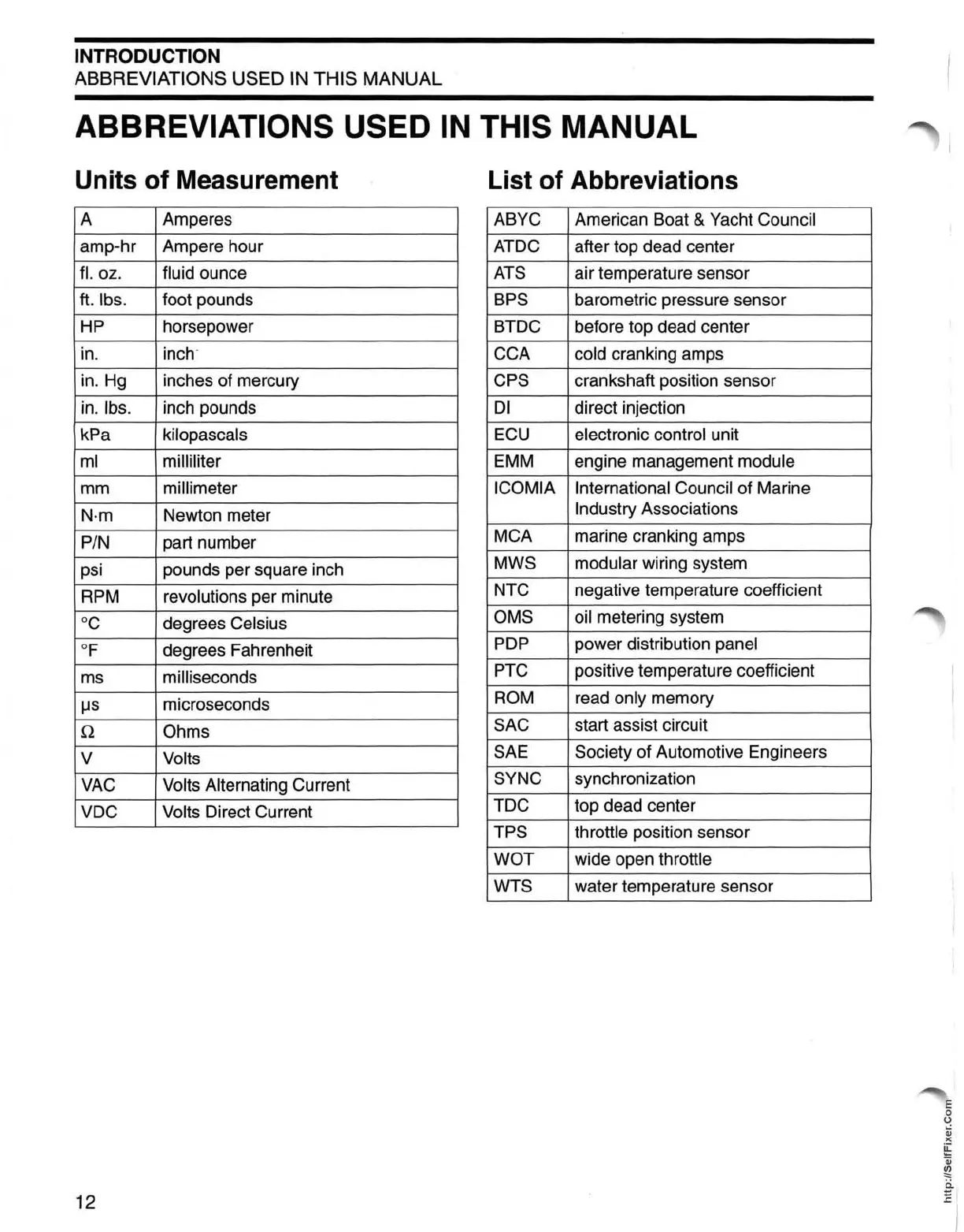in. Hg inches of mercury CPS crankshaft position sensor