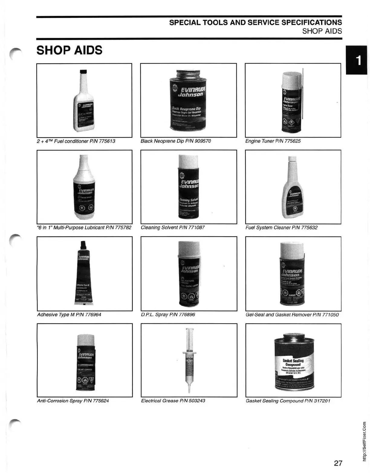 in 1" Multi-Purpose Lubricant PIN 775782 Cleaning Solvent PIN 771087 Fuel System Cleaner PIN 775632